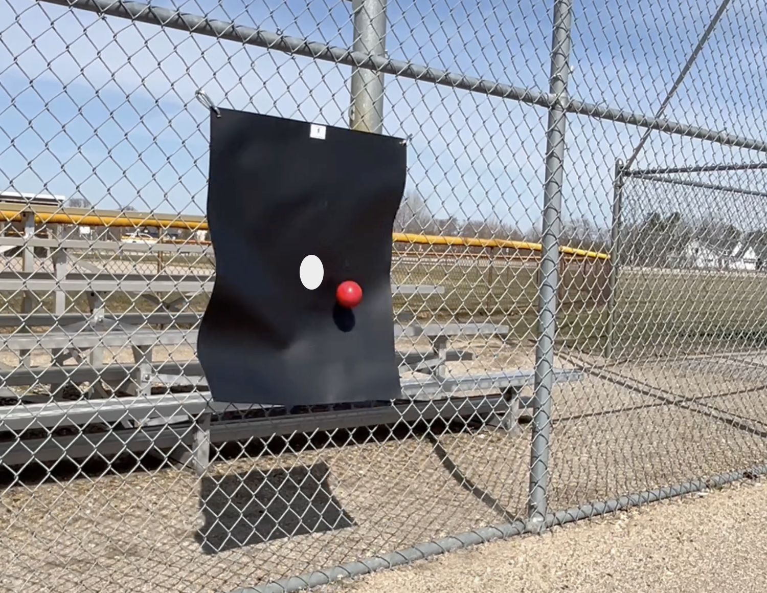 Portable Plyo Mat - Designed to protect your weighted soft-shelled balls from damage during plyometric warmups. Provides a smooth and durable surface for your plyo workout. Easily clips to any chain link fence and protects the soft-shelled balls from sharp edges.